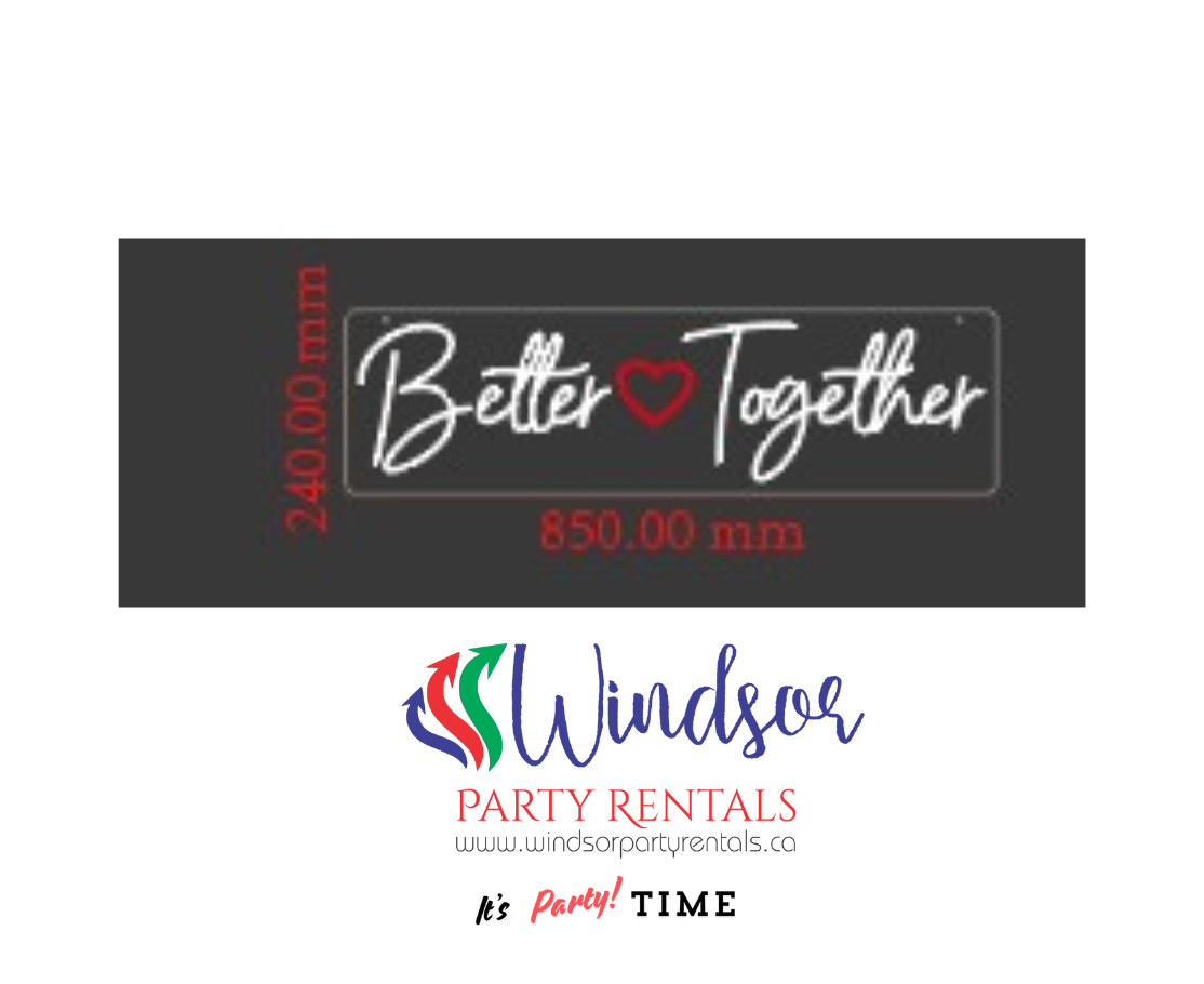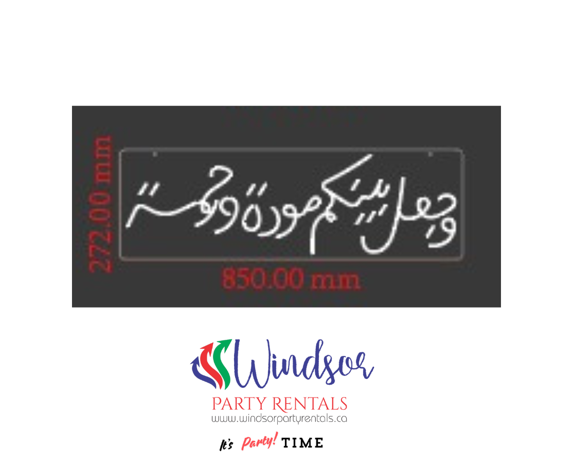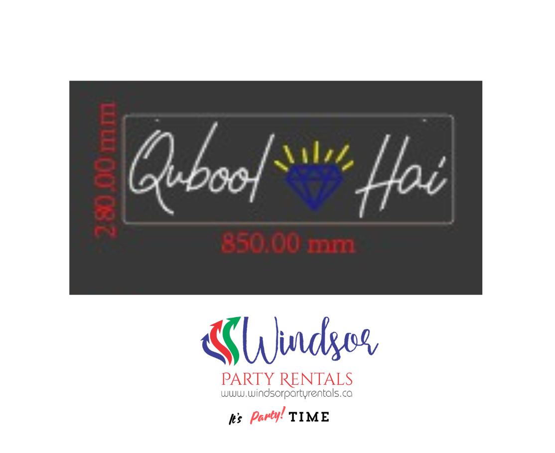High Quality finish with White Neon lights.47 in W X 12 in H $45 for 6/h. Prices are not inclusive of delivery / set up / pick up feesVideo
