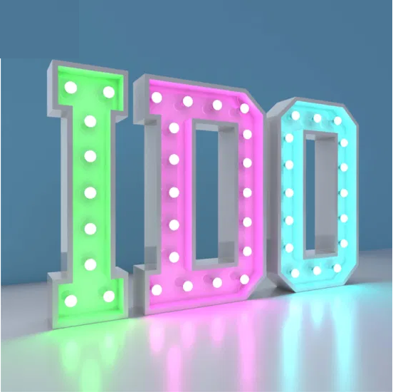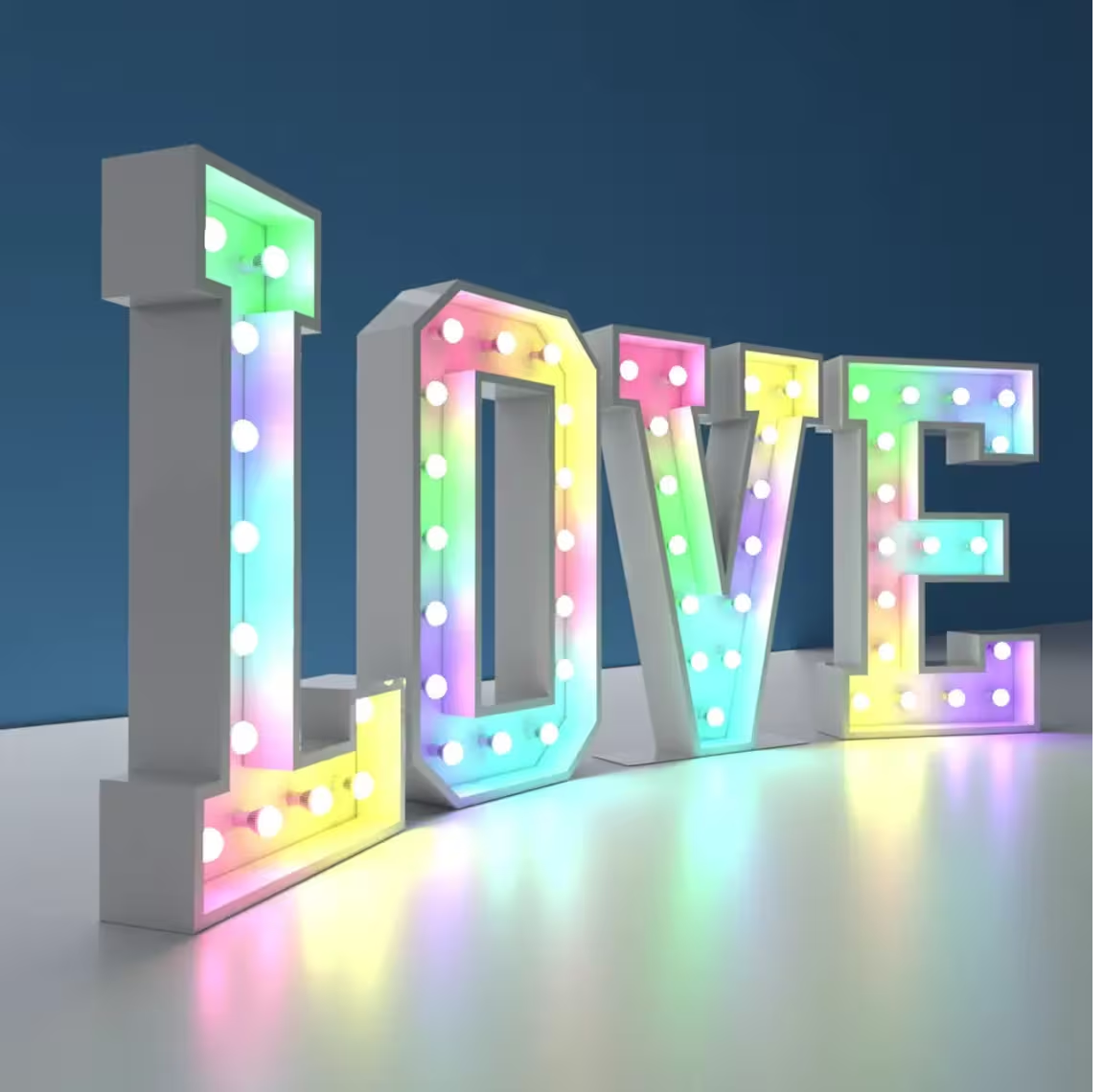 "Introducing our eye-catching LED Marquee sign, standing tall at 4 feet, designed to illuminate your message with brilliance and style. Perfect for events, businesses, or home décor, this dynamic signage solution captivates attention and adds a touch of modern flair to any setting. Make a bold statement and shine bright with our LED Marquee sign."