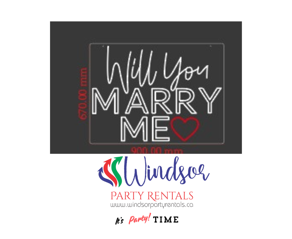 Neon Sign Will You Marry Me for rent in Windsor Ontario SKU: NL01-03