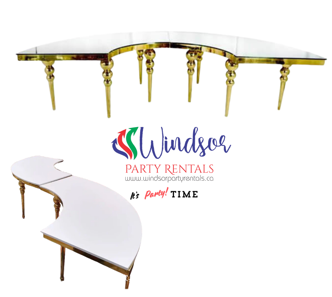 Luxe, shiny gold feature chairs for the happy couple! These stunning metal chairs with gold mirror finish, and white/ivory vinyl seat pads with add some serious style to your reception table for your special day min 2 Chairs required for booking .Special Order Please Call Video.Commercial Grade 182.9 cm (6 ft.) Centre-Fold Table #EF012-04