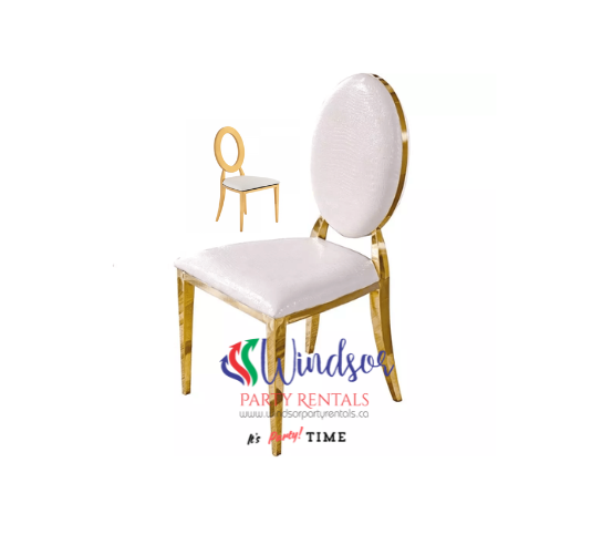 Unique, straight leg design for greater stability UV Protected, Non-Stick and Anti-static finish Designed for Indoor/Outdoor & Commercial Use Foldable $4.00 Per Chair Size 31"H x 15"L min 25 Chairs required for booking .Set up and take down of the chairs is the responsibility of the customer. Additional fees for set up and take down of chairs.Luxurious Gold Mirror Glass Oval Back Chairs #EF02-03